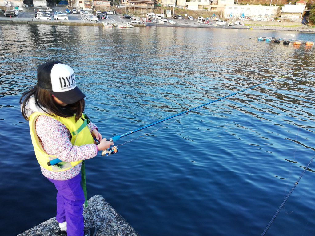 先週足を挫いて2週間安静の為、磯には行けない息子。それでも先週末は雨で釣りに行っていないからか、堤防でもいいから釣りに連れていけと。堤防なら磯靴を持っていない娘も行けるかもと思って聞いてみると、「行く!」とのこと。それならなら、近くにトイレもあり、魚影も濃いらしい江之浦の堤防につれていくことにしました。