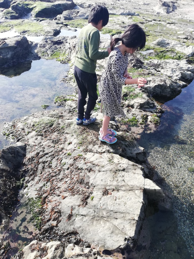 先週日曜日に家族で三浦の毘沙門に焚火に行きました。その時、すべらないように注意しながら潮だまりを見学し、大畑崎の磯下見。意外とよさそう。
