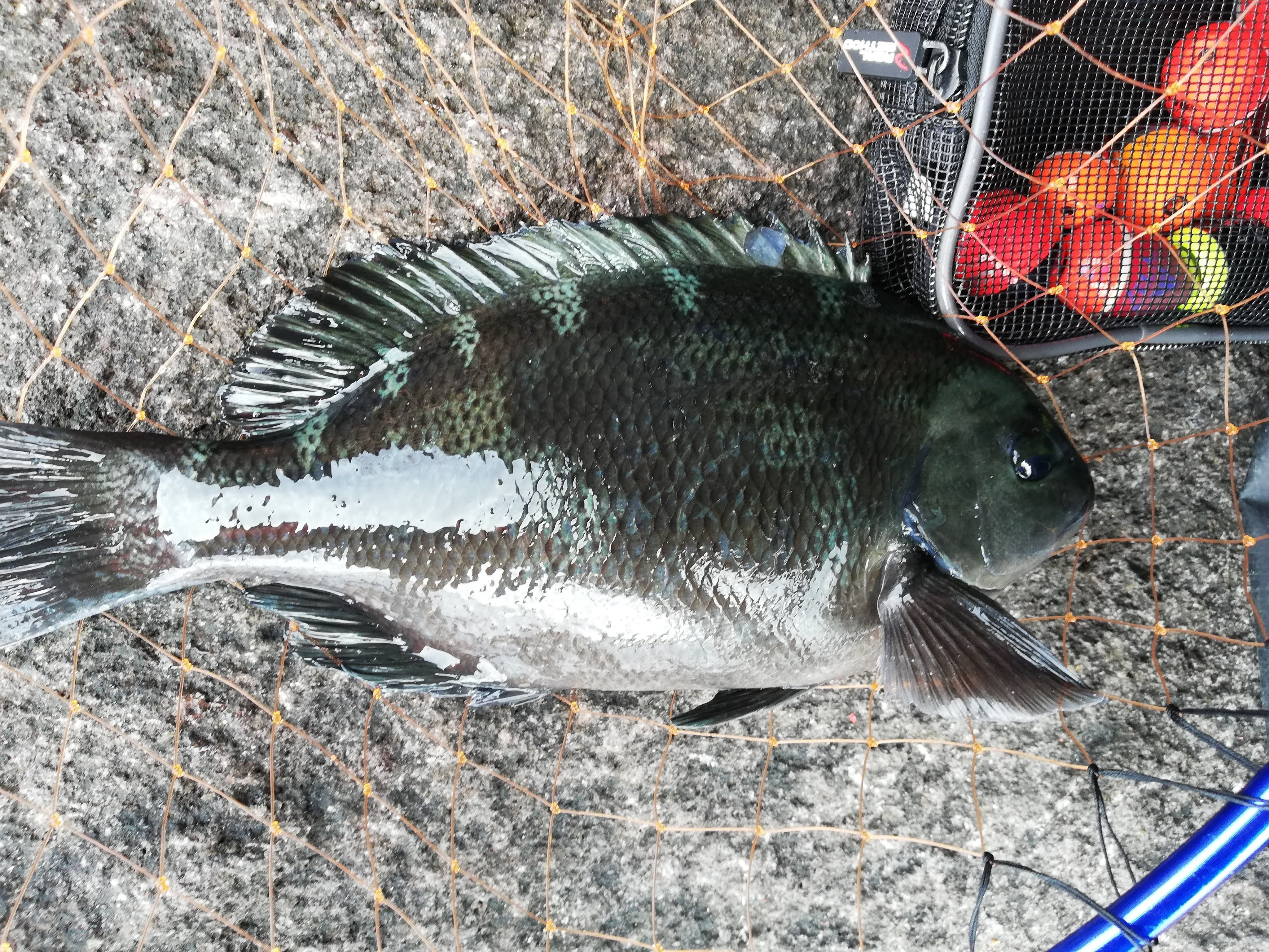 いつも釣った魚の写真がないので、今回は撮影してみました。元気なメジナ。