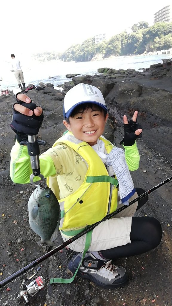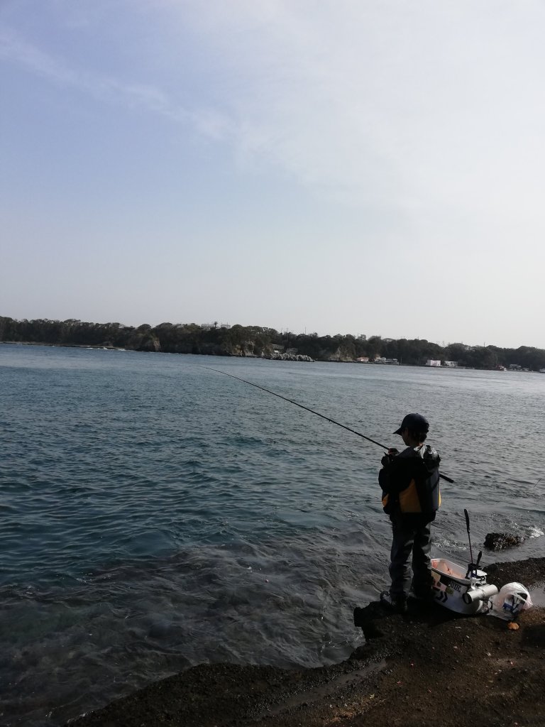 ここは島陰で南西の風・波でも問題なく竿だしできます。私は離れた場所から見ていましたが、自分で準備して、隣で竿だししていた知らないおじさんともちゃんとコミュニケーションとりながら釣りをしています。1年前と比べると大きく成長したもんです。結果は、実釣時間3時間程度でウミタナゴ3匹。息子曰く「ここにメジナおらん」だそうです。翌日の夕食でさんが焼きになりました。