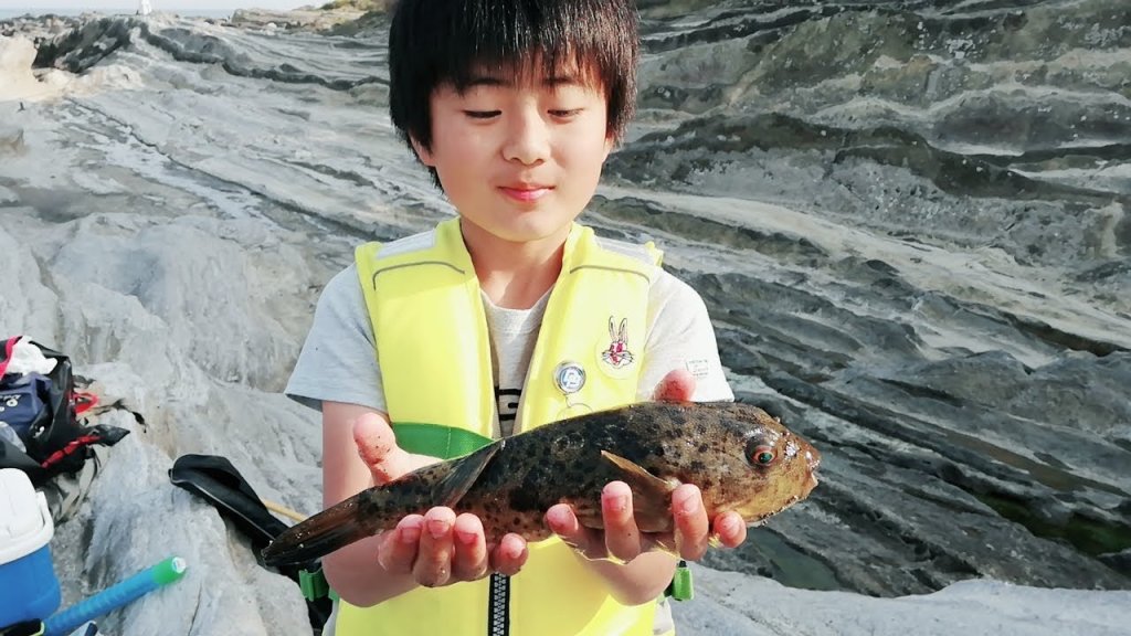 つり上げた際、隣にいた老夫婦と孫と思われる方から、持って帰らないなら下さいとの申し入れがあったので、あげちゃいました。知り合いがフグの免許を持っているらしく、喜んでたので良かったです。僕らではリリースするしかないしね。息子はお返しにお菓子を分けてもらって、こちらも喜んでました。