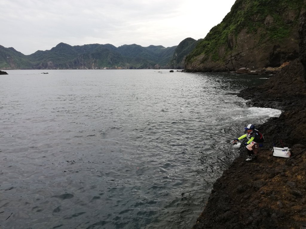 雨に濡れながら昼頃までよく連れていたのですが、昼頃に外海のうねりが高くなって来たので、港内側へ移動。すると2投目で