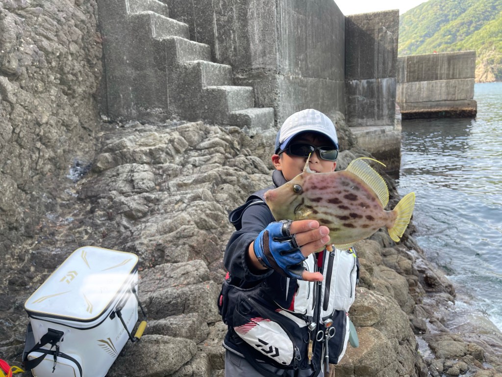 波が高くなり、移動した堤防ではカワハギもゲット。