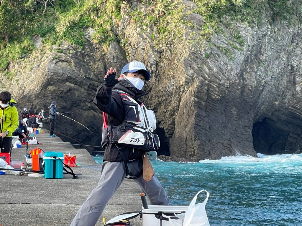 撒き餌で沖に小鯖を誘導して、足元にオキアミ撒いてメジナをゲット!