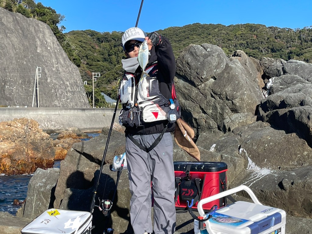 渡してもらったのは雄島のヒナタ。早速釣り始めますが潮が動かず水温低く、苦戦しました。そんな中、私がなんとか30cmくらいのオナガを釣った後‥