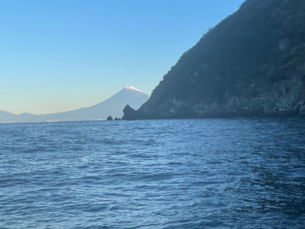 富士山を拝みながらいざ磯へ。船長に感謝!